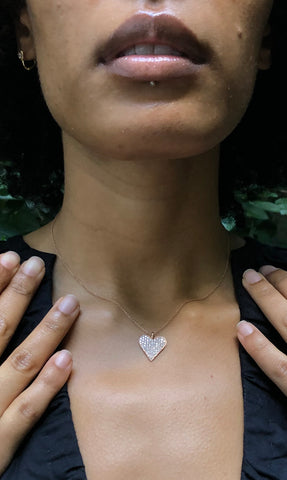 14k rose gold 16” chain and heart pendant set with pave diamonds.
